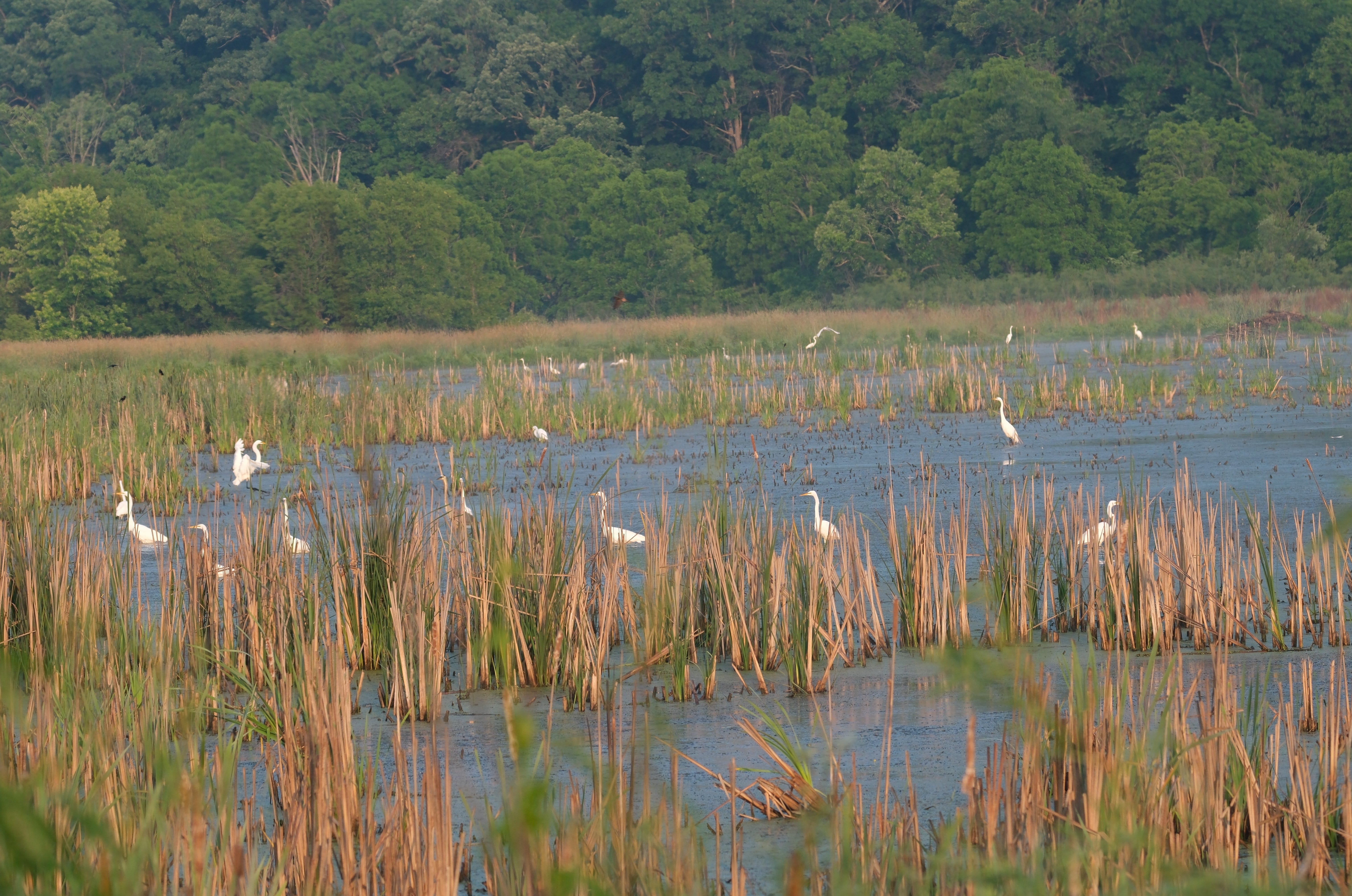 In the morning, the egrets wade through the water searching for a meal. I’ve been arriving to Rush Creak SNA fairly early - thirty minutes to an hour after sunrise. and find a dozen or so hanging out in the marsh. I was astonished last week when I arrived to find nearly fifty milling about. The image above is, of course, only a share of the total. For those looking closely and zoomed in, there is a Great Blue Heron mixed in with the lot. On this particular morning I counted four Great Blue Heron scattered around, among other creatures.
